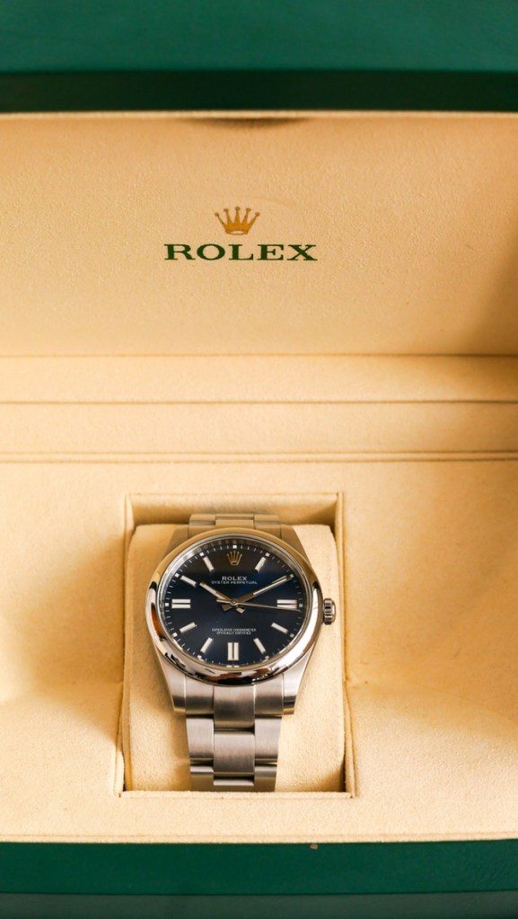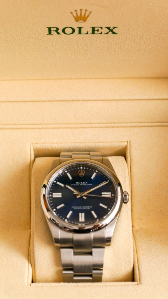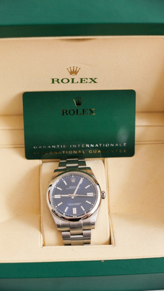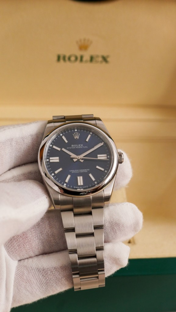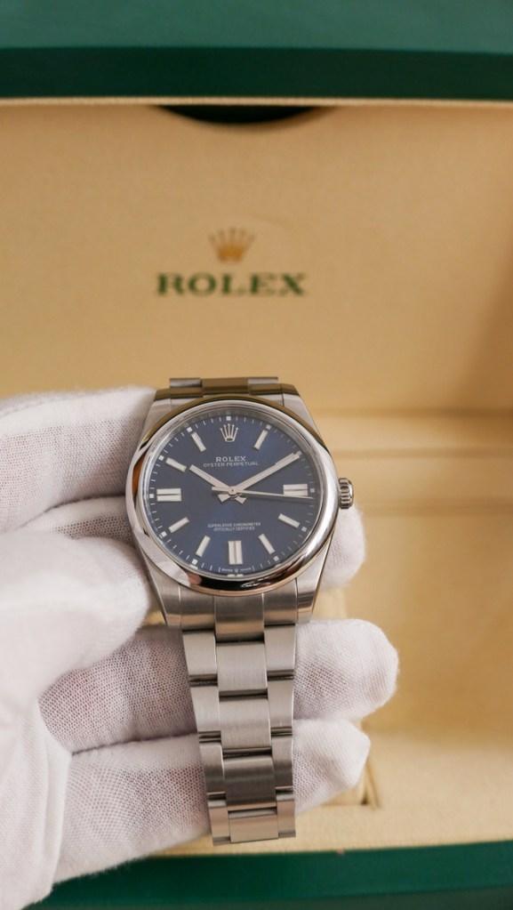 This is a pre-owned Rolex Oyster Perpetual 41mm Blue dial and We have tried our best, to describe about the Swiss Watch, and, provided photos, which we made, in our boutique without using any special effects or photoshop skills. However, if you still have any questions, please feel free to ask us and we shall be delighted to have a talk with you. We are also available for a video chat on WhatsApp to assure you our authenticity as Swiss Watch Shop.